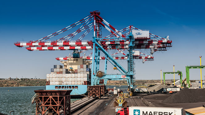 Перевалка осуществляется на самом современном терминале Черного моря (длина причала 470 м и глубина 15 м), а также на крупных наливных терминалах акватории порта Южный.